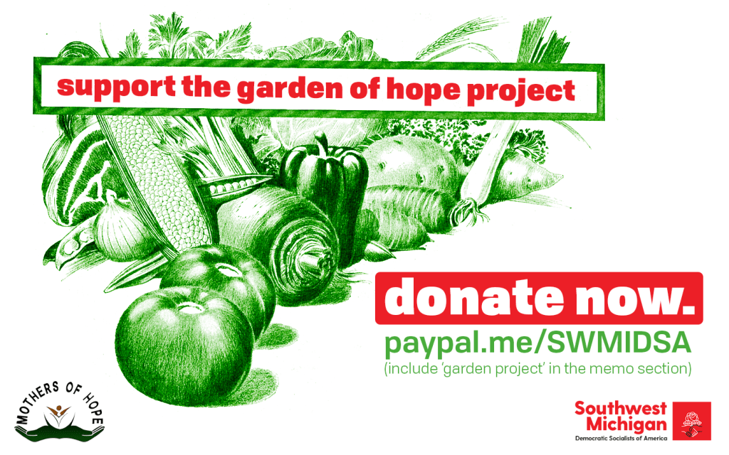 Every little bit helps, and we encourage DSA members and allies to contribute via our PayPal here: paypal.me/SWMIDSA (please include “garden” in the memo section). We are also accepting donations in kind of garden tools and supplies to initiate and sustain the garden.